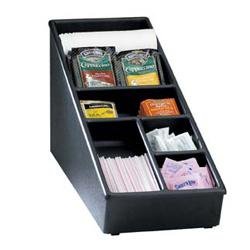The NLS-1BT features durable polystyrene construction and an easy-to-clean ABS plastic top. The black base and black top will fit any decor. This unit is ideal for merchandising single-serve coffee, tea and hot chocolate packets or simply organizing lids, straws, stir sticks and condiments. Features: Durable black polystyrene construction. Neatly organizes lids, straws and condiments. Perfect for merchandising single-serve coffee and tea. Great for organizing lids, straws and condiments. Specs: Dimensions: 8 1/2"W x 11 3/8"H x 23 1/8"D. Ships within 2 business days.